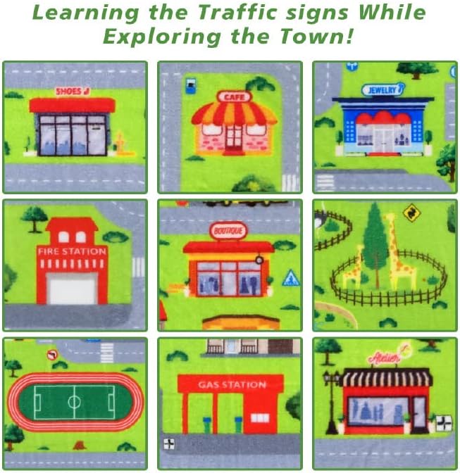 Kids Playmat Car Rug Educational Car Rugs Extra Large City Life Play Mat for Bedroom Play Room Game Area Non Slip Kids Foam Rug Playtime Activity Mat for Toddler Baby Boys and Girls 8 x 10