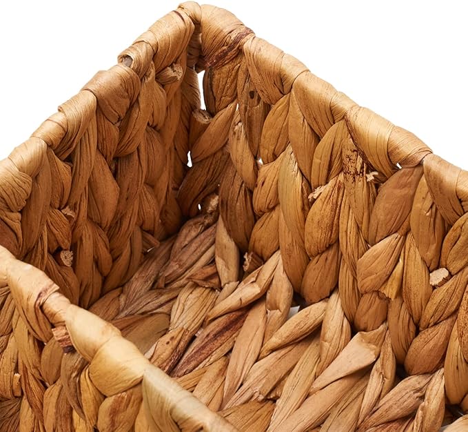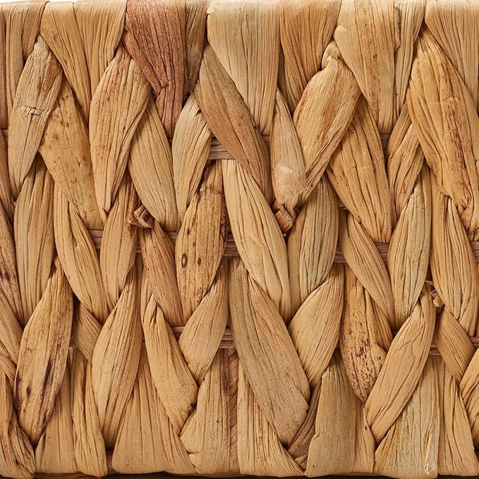 - STURDY & DECORATIVE - Beautifully hand-woven out of all natural water hyacinth with a durable metal frame into rectangular baskets. The earthy tones in the natural fibers offer an attractive and visually aesthetic room decor accent. A practical way to maximize storage in any room of your home or office.