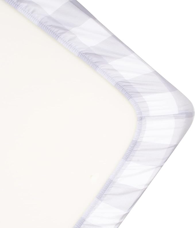 JISEN Baby Crib Sheet 1 Piece Portable Fitted Crib Sheet for Standard Crib and Toddler Mattresses Nursery Bed Decor for Boys Girls 28x52 Inch Grid Grey White