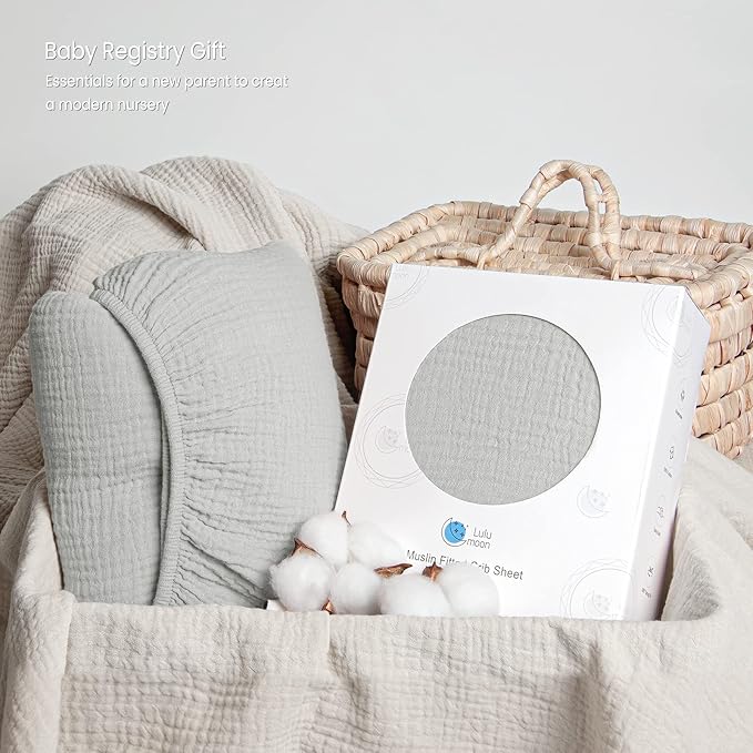Lulu moon Muslin Crib Sheet Fitted Crib Mattress Sheet for Boys and Girls, 28"x 52" Gentle Gray