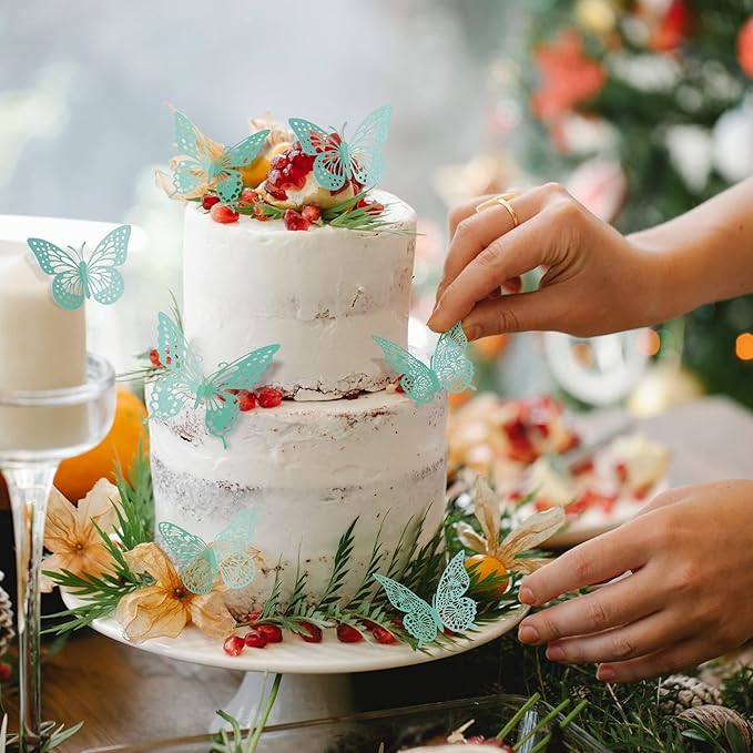 SAOROPEB 3D Butterfly Wall Decor 48 Pcs 4 Styles 3 Sizes, Butterfly Birthday Decorations&Butterfly Party Decorations&Butterfly Cake Decorations-Removable (Pale Turquoise)