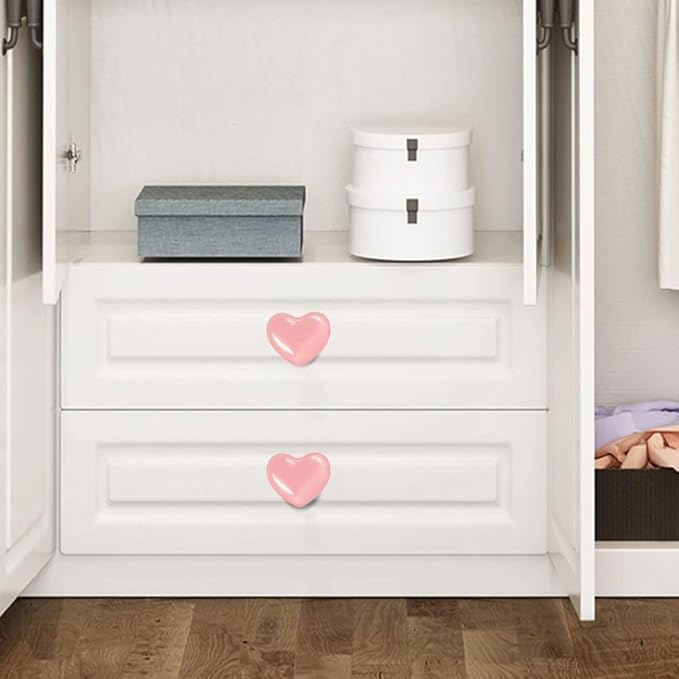 - The heart drawer knob brings vivid flair to your cabinet, cupboard, wardrobe, dresser, drawers, closet, armoire, nightstand etc. Refurbish your furniture and brighten up your house, embrace a charm with our pink love drawer knobs.