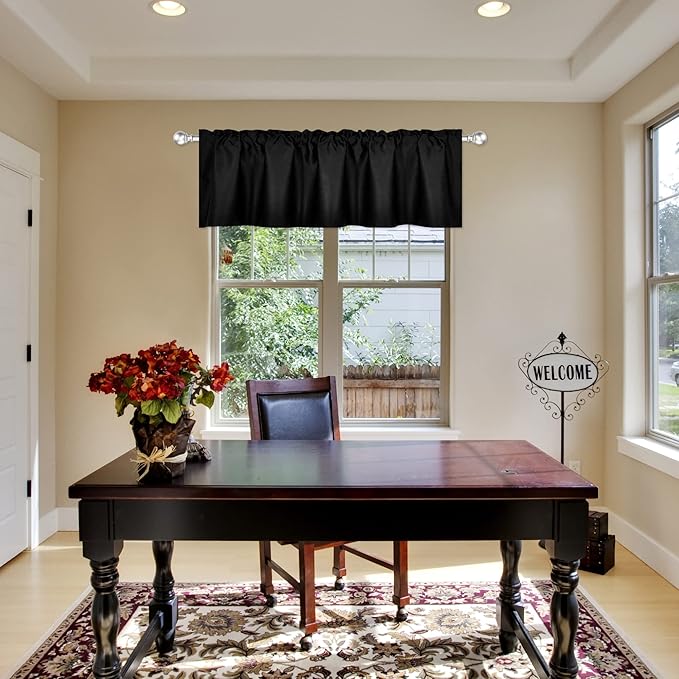 Black Valance for Windows 72x18 Inch Solid Thermal Insulated Blackout Rod Pocket Kitchen Short Curtain Toppers Valance for Bathroom Living Room 1 Panel