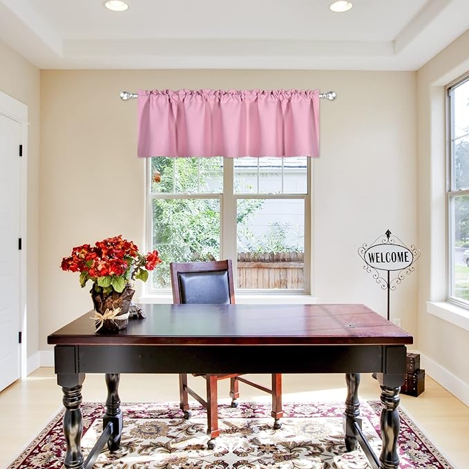 Baby Pink Valance for Windows 72x18 Inch Solid Thermal Insulated Blackout Rod Pocket Kitchen Short Curtain Toppers Valance for Bathroom Living Room 1 Panel
