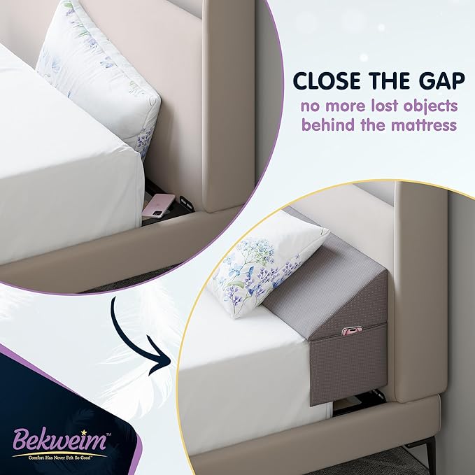 - PREMIUM QUALITY ASSURANCE: Experience the epitome of comfort with Bekweim's Wedge Headboard Pillow, a supreme mattress wedge gap filler crafted for your bed headboard. Our unwavering commitment to premium quality ensures a superior gap filler for bed headboards. Trust in Bekweim for not just a product, but a commitment to excellence, backed by our dedicated customer service. Your satisfaction is our priority, making Bekweim the choice for those who seek unparalleled quality and support.