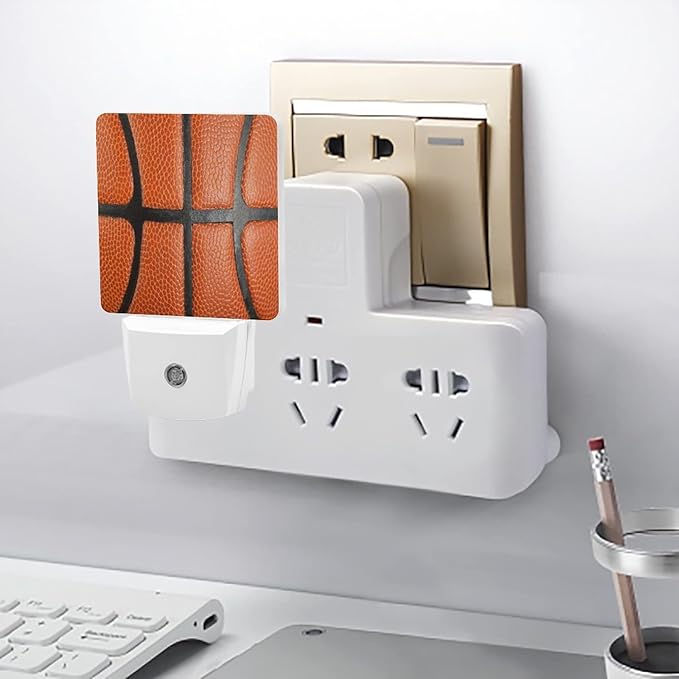 LED Night Lights Lamp with Dusk to Dawn Sensor, Orange Leather Textured Basketball Night Lamp, Night Lights Plug Into Wall for Kids Room, Bedroom, Bathroom, Kitchen, Hallway