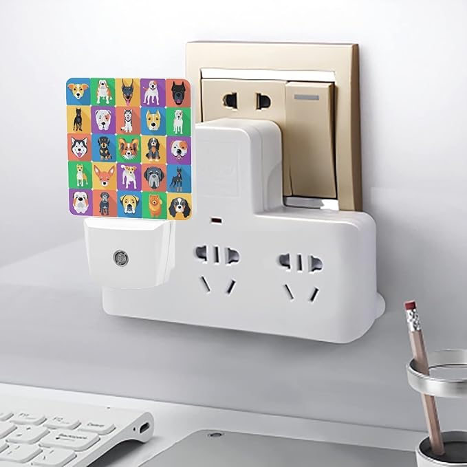 LED Night Lights Lamp with Dusk to Dawn Sensor, Dogs Icon Flat Design Night Lamp, Night Lights Plug Into Wall for Kids Room, Bedroom, Bathroom, Kitchen, Hallway