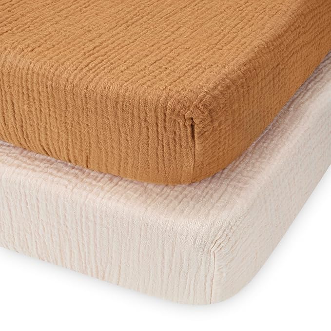 - Premiun Muslin Cotton: Made from muslin cotton, our mini crib sheets are cozy and breathable in all seasons, making babies a better sleep. Plus, the soft muslin material is friendly for your baby's delicate skin