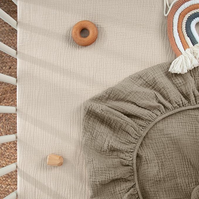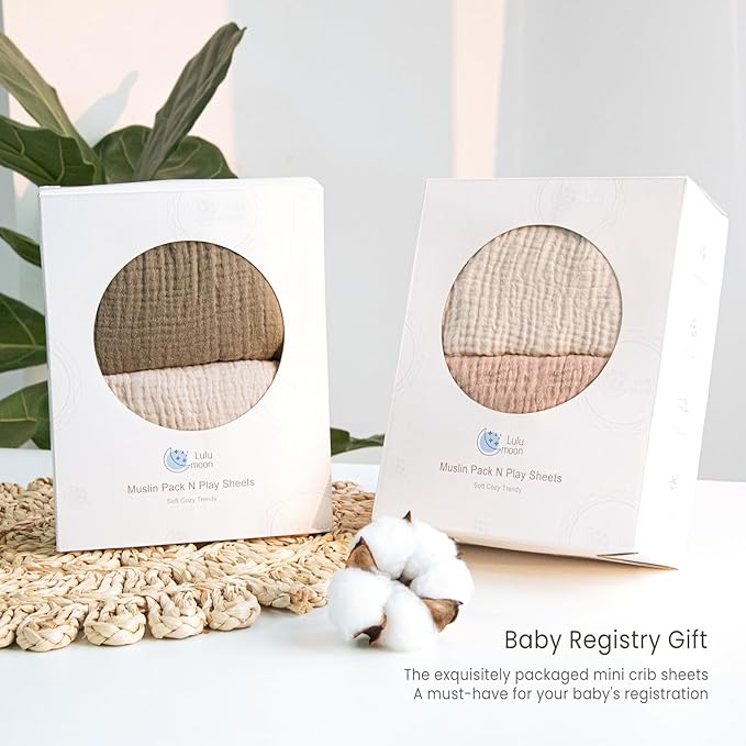 - MUSLIN COTTON - The pack and play sheets are soft and breathable to give your baby a cozy place to sleep. They make a smoother transition from snuggled in your arms to safely sleeping in their mini crib.