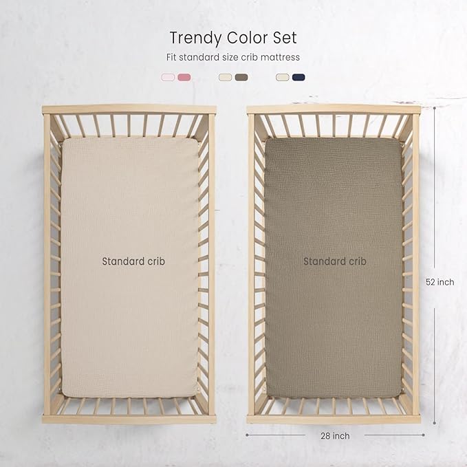 - MUSLIN COTTON - Our crib sheets are made of 100% muslin cotton.The soft and breathable material won't irritate baby's delicate skin and allows your baby to get comfort when sleeping.