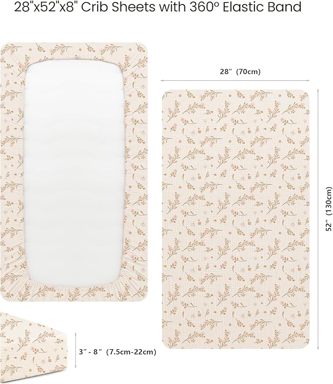 - SUPER SOFT and BREATHABLE: These muslin crib sheets are made of 100% cotton (Muslin) for maximum breathable with skin-friendly soft touch and retain its color after washed for several times. Keep your baby super comfortable and soft with this crib sheet.