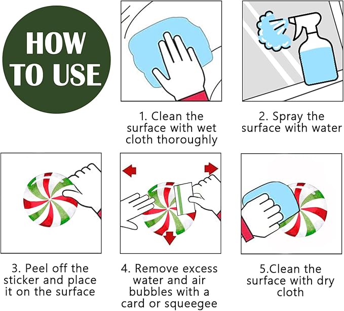 - No Adhesive Home Decor: These Christmas window decors are thin static clings, which do not require additional glue or tape, and can be easily attached to a smooth and dry surface. Just remove the window sticker and paste it on the surface of cars, trucks, glass, mirrors, windows, glass vandal-proof doors and bathroom surfaces; and use a card to squeeze out air bubbles from top to bottom. It is easy to attach to your window and remove without leaving sticky residue