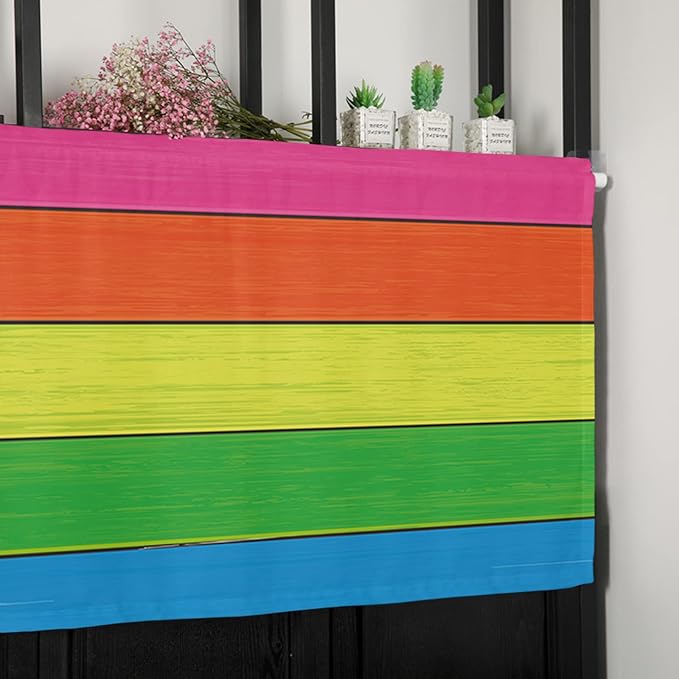 Vandarllin Farmhouse Kitchen Curtains Valances for Windows,Rainbow Retro Rustic Barn Wood Texture Rod Pocket Country Window Treatment for Kitchen/Living Room/Bedroom/Bathroom,42" X 12" -1 Panel