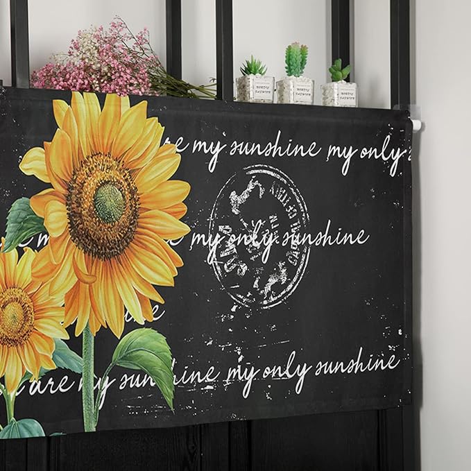 Vandarllin Buffalo Plaid Kitchen Curtains Valances for Windows Farmhouse Sunflower Rod Pocket Window Treatment for Kitchen/Living Room/Bedroom/Bathroom,42" X 12" -1 Panel, Autumal Wild Flower