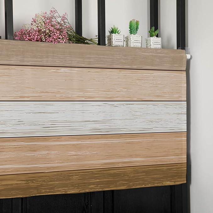 Farmhouse Kitchen Curtains Summer Fall Valances for Windows ,Brown Beach Fall Rod Pocket Country Window Treatment for Kitchen/Living Room/Bedroom/ Bathroom,42" X 12" -1 Panel, Rustic Barn Wood Texture