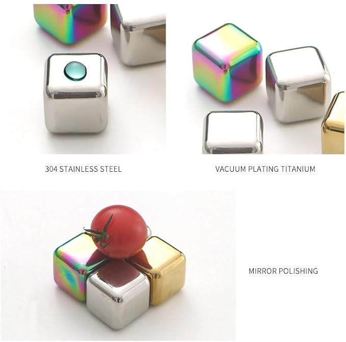ShanSon Wine Chillers Metal Ice Cube 8 PCS Stainless Steel Whiskey Stones Reusable Whiskey Rocks Beverage Chilling Stones for Scotch and Bourbon Drinking Gifts Set for Men Dad Husband,Gold
