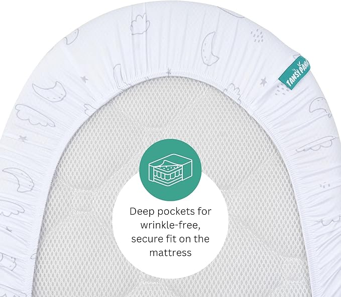 - Snug Fit: Our 32x16 inch bassinet sheets with elastic band around the edges make it secure and fit perfectly without wrinkles on a Karley, Plus, Lacy, small Regalo Basics Infant, Baby Delight Slumber Deluxe Rocking, Snuggle Nest,, Baby Delight Snuggle Nest, and Graco Modes Carry Cot bassinet
