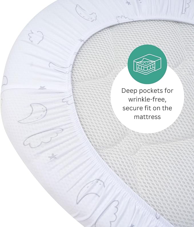 - Soft and Breathable: Our delightful cloud baby bassinet sheets are crafted from premium fabric, making it soft, breathable, and ideal for a perfect night’s sleep and feel like a gentle caress from mom