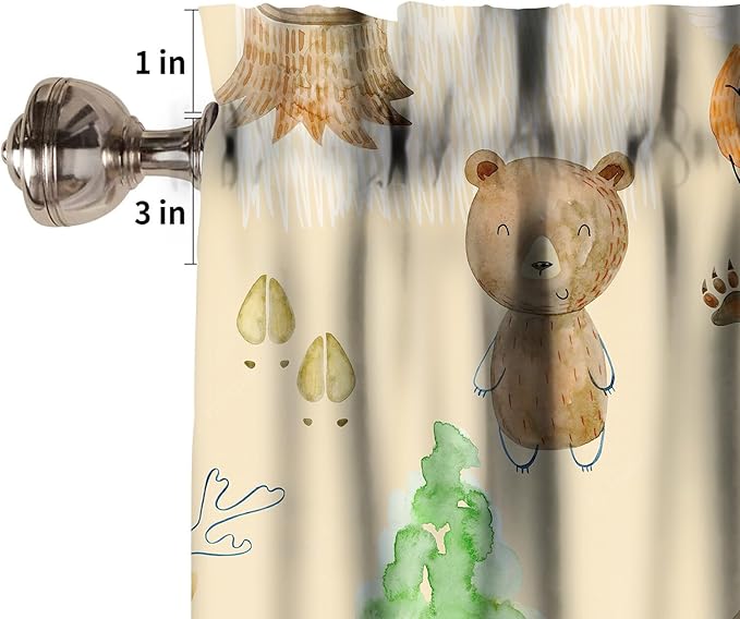 Woodland Animals Kitchen Curtain Valances, Watercolor Forest Animals Valances Set, Bear Deer Fox Wolf Set Hunting Kitchen Curtains Set for Kitchen Cafe Living Room Bedroom Decor 54x18 Inch, 1 Panel