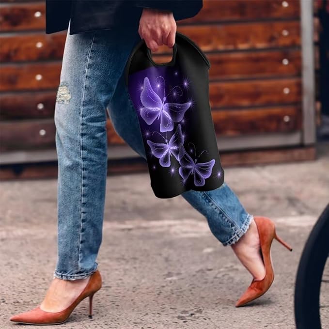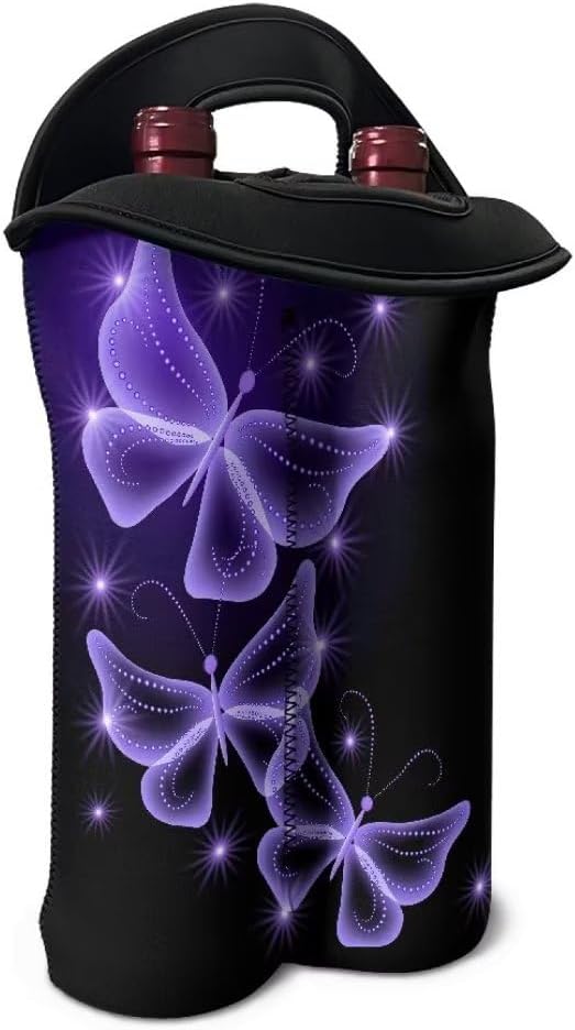doginthehole Butterfly Wine Carrier Tote Bag 2 Bottle Pockets Insulated Neoprene Wine/Water Bottle Holder for Travel with Secure Carry Handle, Portable Wine Carrying Bag Gift for Women Wine Lovers