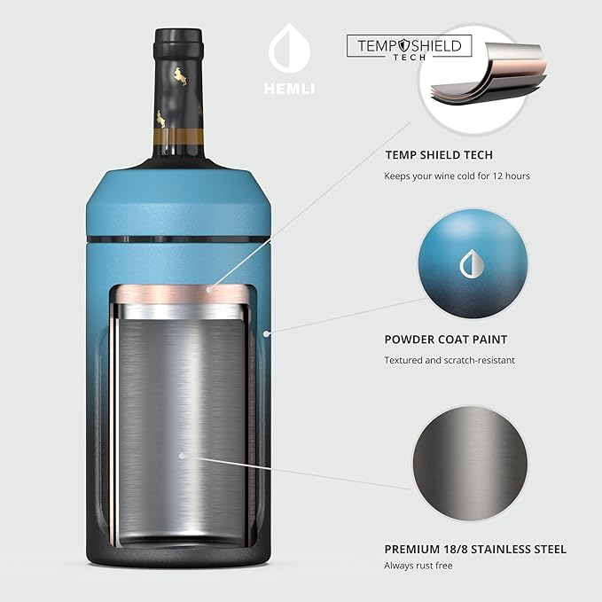 - Our double walled vacuum sealed wine chiller sleeve and wine cooler holder offers an ergonomic body design that is lightweight, easy to carry, and a breeze to pour from. The durable powder-coat paint is textured and scratch-resistant.