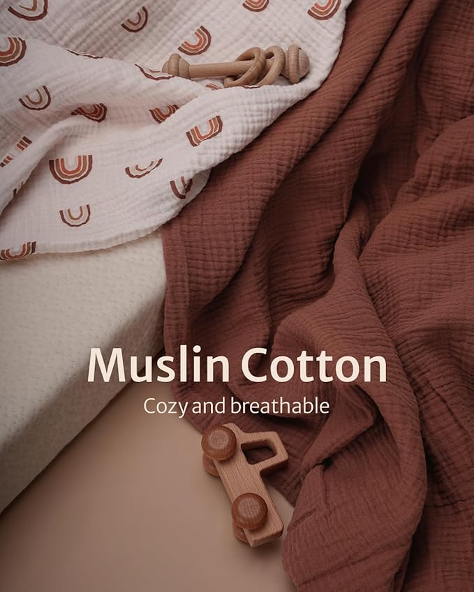 - Premiun Muslin Cotton: Made from muslin cotton, our mini crib sheets are cozy and breathable in all seasons, making babies a better sleep. Plus, the soft muslin material is friendly for your baby's delicate skin