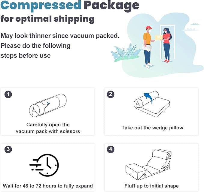 - Easy to Carry & Store: Compared to traditional wedge pillows, bdeus bed wedge pillow set can be COMPRESSED to reduce the size and is portable for travel. We include storage bag to make storing hassle-free without taking up space.