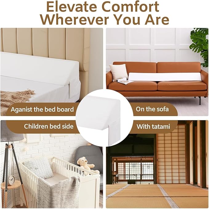 - Perfect Bed Gap Filler: Tired of losing pillows and items in that annoying gap between your mattress and headboard? Say no more! Bedluxe bed wedge pillow for headboard is here to save the day. With its perfect dimensions, it effectively closes the troublesome 0-6 inches gap, ensuring you have a comfortable and uninterrupted sleep every night. No more waking up to search for lost items or readjusting your pillows!