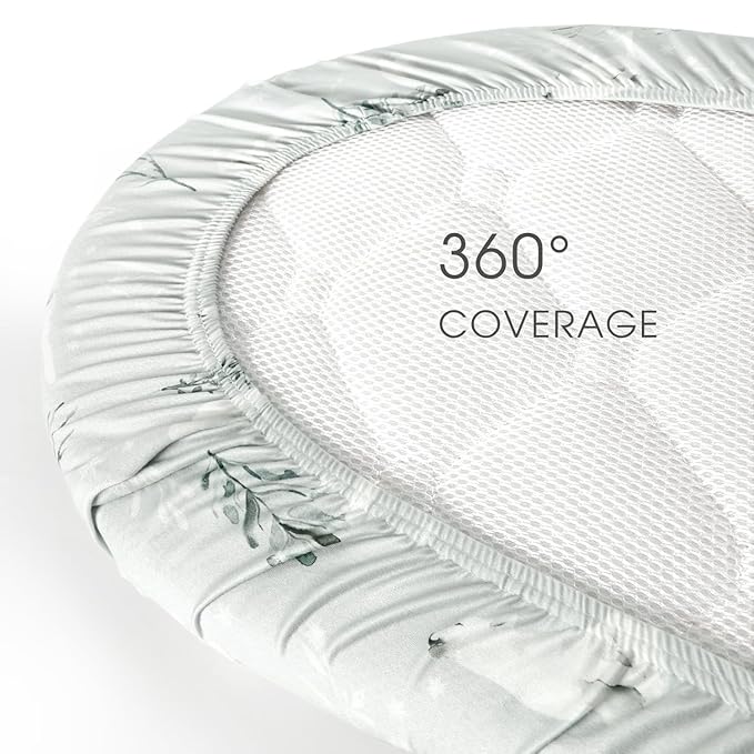 - Universal Fit – Measuring 32" x 16" x 5". Our bassinet sheets fit almost all standard oval, round, rectangle, hourglass shaped bassinet mattress. Each bassinet mattress pad cover comes with an elastic band encased at the bottom for safety.