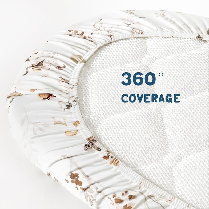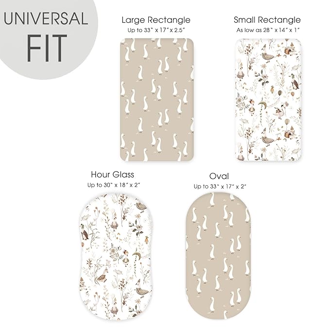 - Universal Fit – Measuring 32" x 16" x 5". Our bassinet sheets fit almost all standard oval, round, rectangle, hourglass shaped bassinet mattresses or changing pads. Each bassinet mattress pad cover comes with an elastic band encased at the bottom for safety.