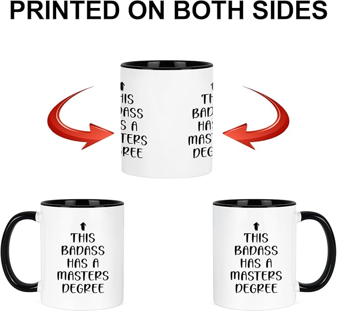- CLEAR & DOUBLE-SIDED DESIGN: The college graduation gifts for her him feature the funny message "This Badass Has a Masters Degree " vividly printed on both sides using high-definition ink. The durable print guarantees that the amusing quote will remain vibrant and intact for years, no matter the number of uses or washes.