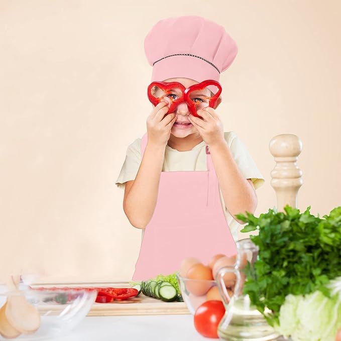 • Kids Apron with Chef Hat : The apron and hat set is made of premium polyester fabric, soft lightweight and wear-resistant. easy to clean,machine washable,non-fading, non-deformation