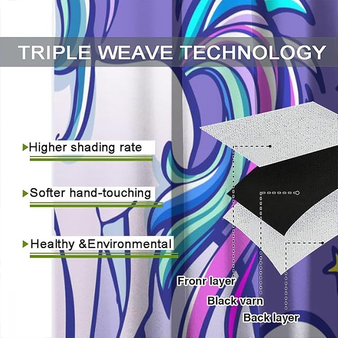 Kids Unicorn Curtains Purple Cartoon Rainbow Cartoon Room Blackout Curtains Boys Girls Baby Room Decor Curtains Living Room Decor 42x54 Inch 2 Panels