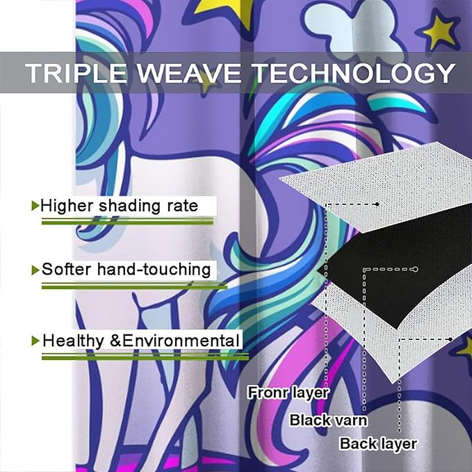 Kids Unicorn Curtains Purple Cartoon Rainbow Cartoon Room Blackout Curtains Boys Girls Baby Room Decor Curtains Living Room Decor 63x63 Inch 2 Panels