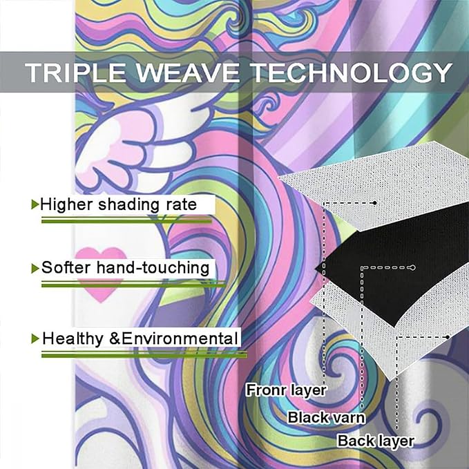 Kids Unicorn Curtains Purple Cartoon Rainbow Cartoon Room Blackout Curtains Boys Girls Baby Room Decor Curtains Living Room Decor 63x72 Inch 2 Panels