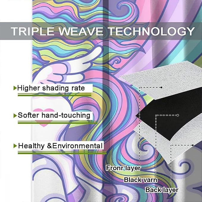Kids Unicorn Curtains Purple Cartoon Rainbow Cartoon Room Blackout Curtains Boys Girls Baby Room Decor Curtains Living Room Decor 72x63 Inch 2 Panels