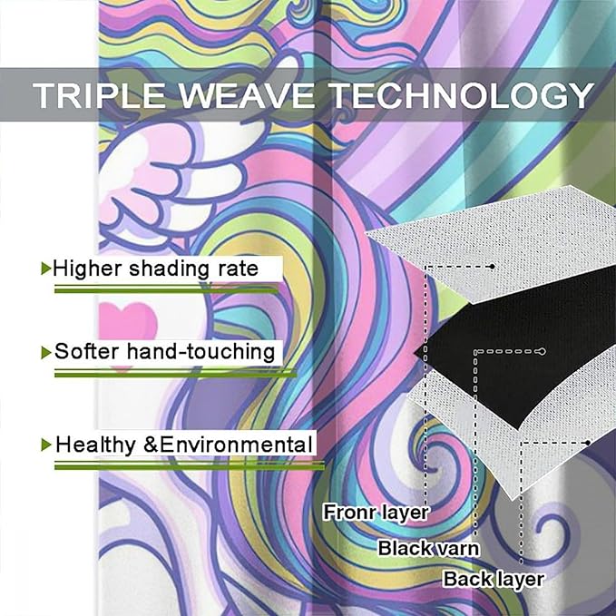 Kids Unicorn Curtains Purple Cartoon Rainbow Cartoon Room Blackout Curtains Boys Girls Baby Room Decor Curtains Living Room Decor 55x63 Inch 2 Panels