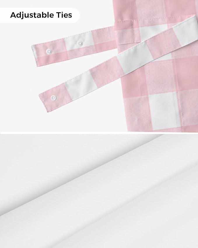 Christmas Blackout Tie Up Valance Curtains for Kitchen Windows Rustic Pink White Buffalo Check Plaid Pattern Window Toppers Balloon Shades for Living Room/Bathroom/Bedroom,1 Panel, 54" X 18",Farmhouse