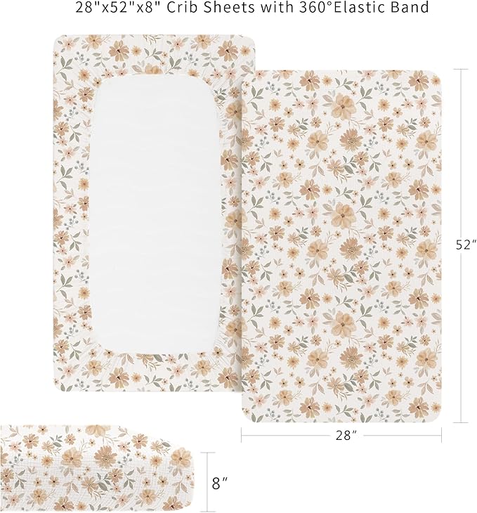 Konssy Muslin Fitted Crib Sheets 100% Cotton Baby Crib Sheets for Standard Crib Mattress (28 X 52 Inches), Soft and Breathable for Boys, Girls (Flowers)