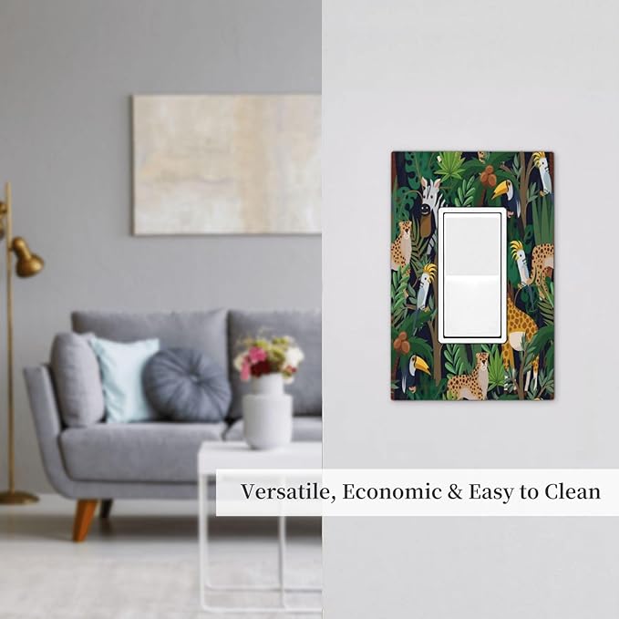 Cartoon Animal Zebra Leopard Giraffe Bird Leaf 1 Gang Rocker Nursery Light Switch Covers Decorative Single Decora Outlet Wall Plate Faceplate Switchplate GFCI for Kidroom Bedroom