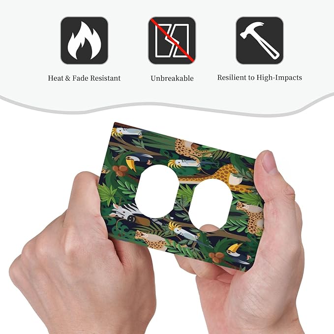 Cartoon Animal Zebra Leopard Giraffe Bird Leaf Single Duplex Wall Plate Covers Nursery Light Switch Cover 1 Gang Outlet Plate Decorative Electrical Receptacle Art Faceplate Switchplate for Kidroom
