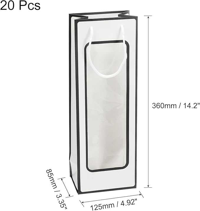 - Size: 125x85x360mm/4.92"x3.35"x14.2"(LxWxH); Material: Paper Bag; Color: White Black; Products Include: 20pcs x Wine Bags; Large enough to hold a 750ml wine bottle, or other items in a similar size.