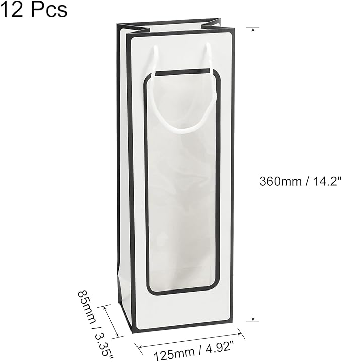 - Size: 125x85x360mm/4.92"x3.35"x14.2"(LxWxH); Material: Paper Bag; Color: White Black; Products Include: 12pcs x Wine Bags; Large enough to hold a 750ml wine bottle, or other items in a similar size.