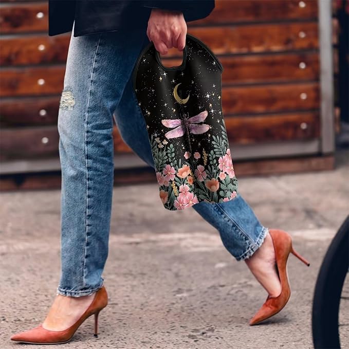 doginthehole Dragonfly Wine Carrier Tote Bag 2 Bottle Insulated Neoprene Wine/Water Bottle Holder Moon Print Wine Carrier Tote Bag Flower Pattern Champagne Carrying Bag Gift for Women Wine Love