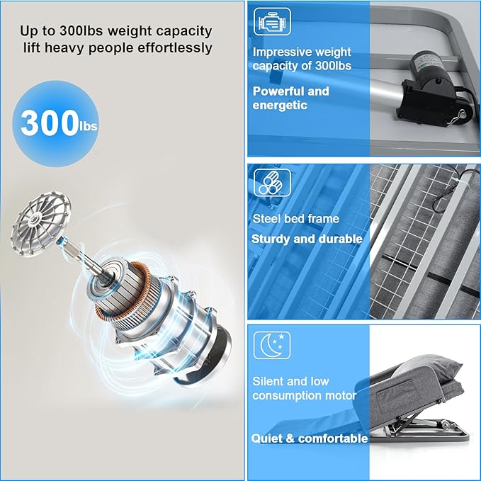 - HIGH-QUALITY: Experience unparalleled quality with our elderly bed assistance products! Its robust thick grid steel frame offers waterproof, anti-corrosion, and breathable durability. Rounded corner design prevents collisions, while the silent motor handles 135kg (297.62 lbs) load effortlessly. Elevate your rest with top-notch comfort and strength.