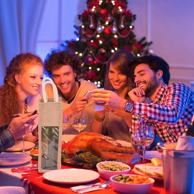 - Natural Material -- The wine bottle tote bag is made of natural jute material weaving, strong load-bearing, the colour is not bleached or dyed, the cotton handles feel comfortable, strong and durable, long time lifting without strangulation.