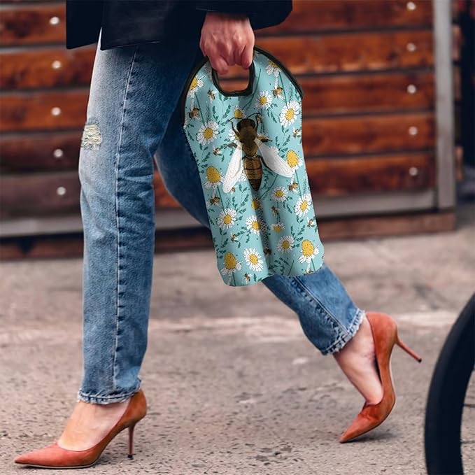 doginthehole Double Wine Gift Bags Bee Print Wine Bottle Bag Reusable Wine Bottle Cover Champagne Carrier Bag Portable Wine Carrying Bag for Party Holiday Home Dining Table Decoration
