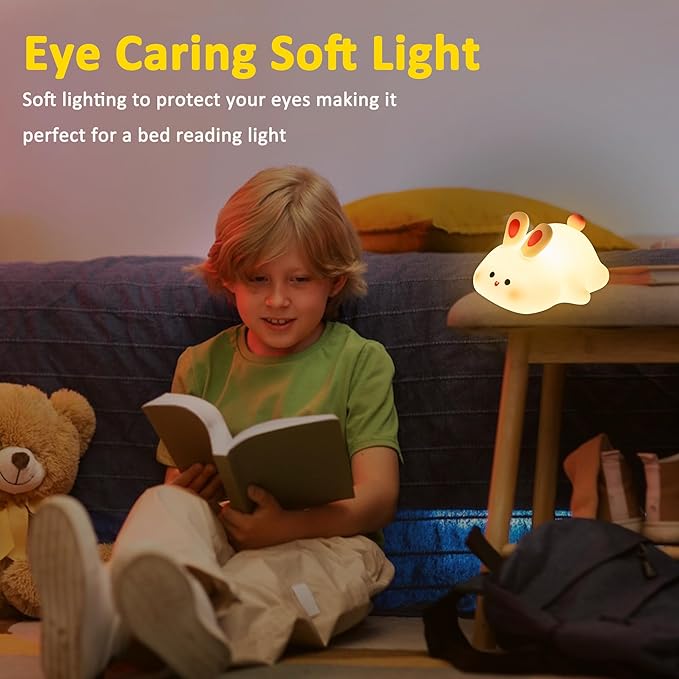 - 🐰Soft bunny night light: Is your child afraid of the dark? Is the light in the bedroom too bright to fall asleep? This adorable bunny light creates a calming atmosphere in the nursery for girls and boys with its warm and soft glow.