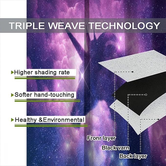 Unicorn Curtains Children's Cartoon Starry Sky Theme Unicorn Pattern Curtains Star Galaxy Boys Girls Room Blackout Curtains 63x63 Inch 2 Panels