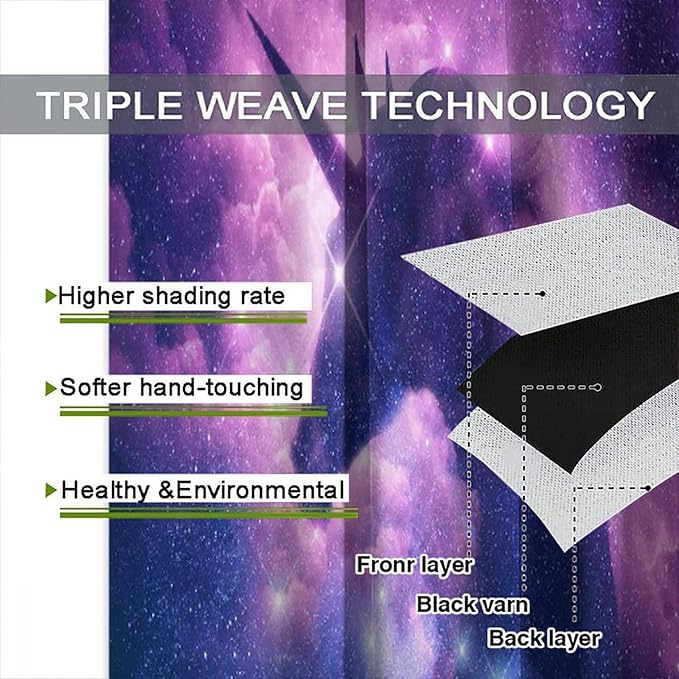 Unicorn Curtains Children's Cartoon Starry Sky Theme Unicorn Pattern Curtains Star Galaxy Boys Girls Room Blackout Curtains 55x63 Inch 2 Panels